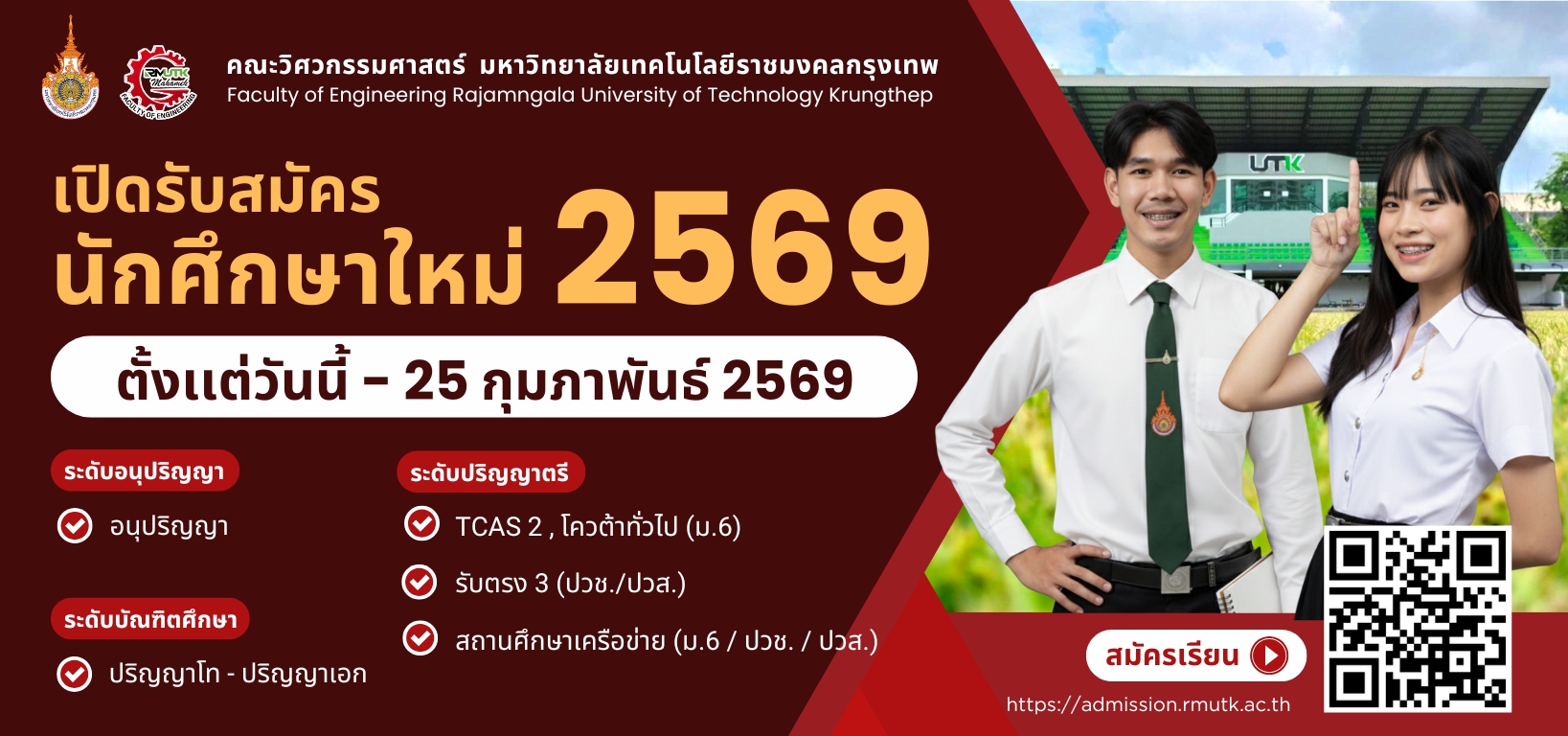 เปิดรับสมัครทุนการศึกษา ประจำปีการศึกษา 2569 มหาวิทยาลัยเทคโนโลยีราชมงคลกรุงเทพ